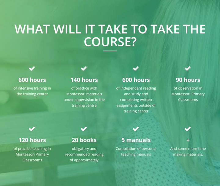 Kogu koolituskursuse sisu ja eesmärgi võtab kokku Montessori poolt öeldu: õpetaja peab andma oma õppetunni, istutama seemne ja seejärel kaduma; last jälgides ja oodates. Koolituskursus annab selleks teadmised ja oskused.